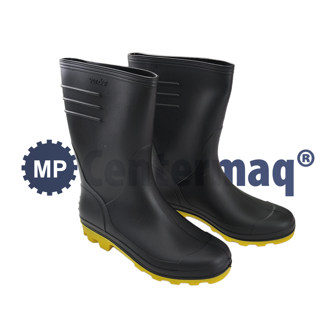 Bota pvc Preta C/solado Amarelo Tam41